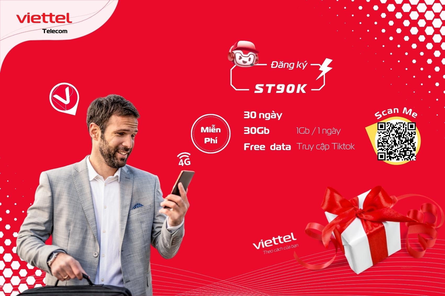 Khi đăng ký gói ST90K Viettel, quý khách còn nhận được 30Gb data tốc độ cao để truy cập mạng internet. Mỗi ngày quý khách sẽ nhận được 1Gb data liên tục trong 30 ngày.