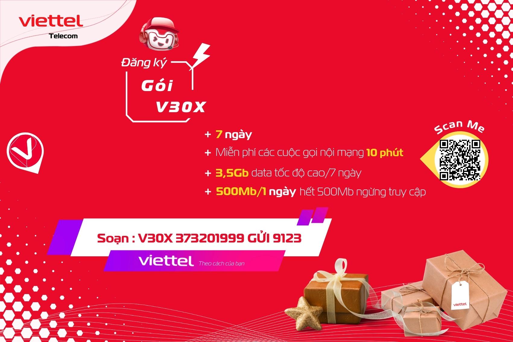 V30X Là tên gói cước khuyến mãi dành riêng thuê bao trong danh sách khuyến mại của Viettel