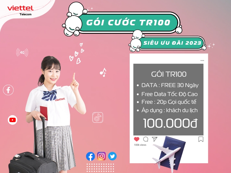 Nội dung bài viết này chúng tôi mời bạn tham khảo gói TR100 của Viettel mới được hệ thống Viettel triển khai từ ngày 12/1/2025 áp dụng cho khách hàng du lịch đăng ký sử dụng 1 lần duy nhất.